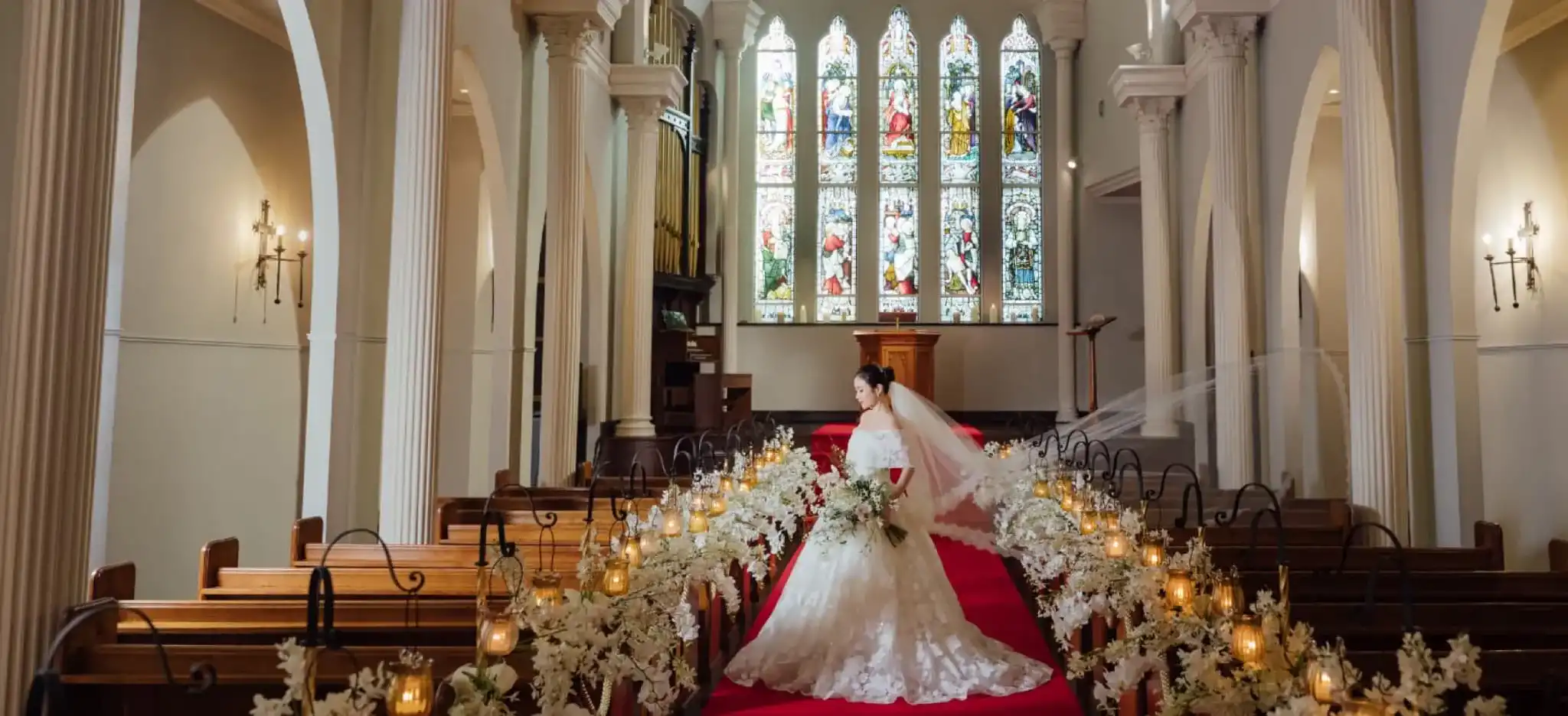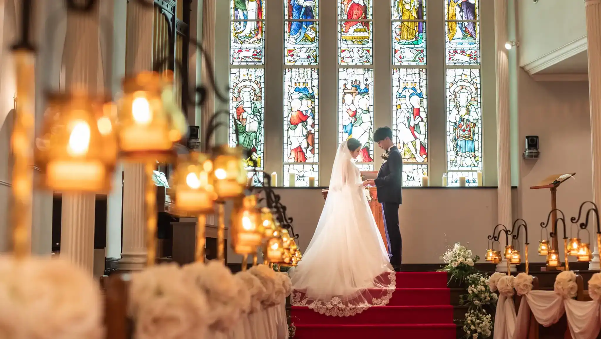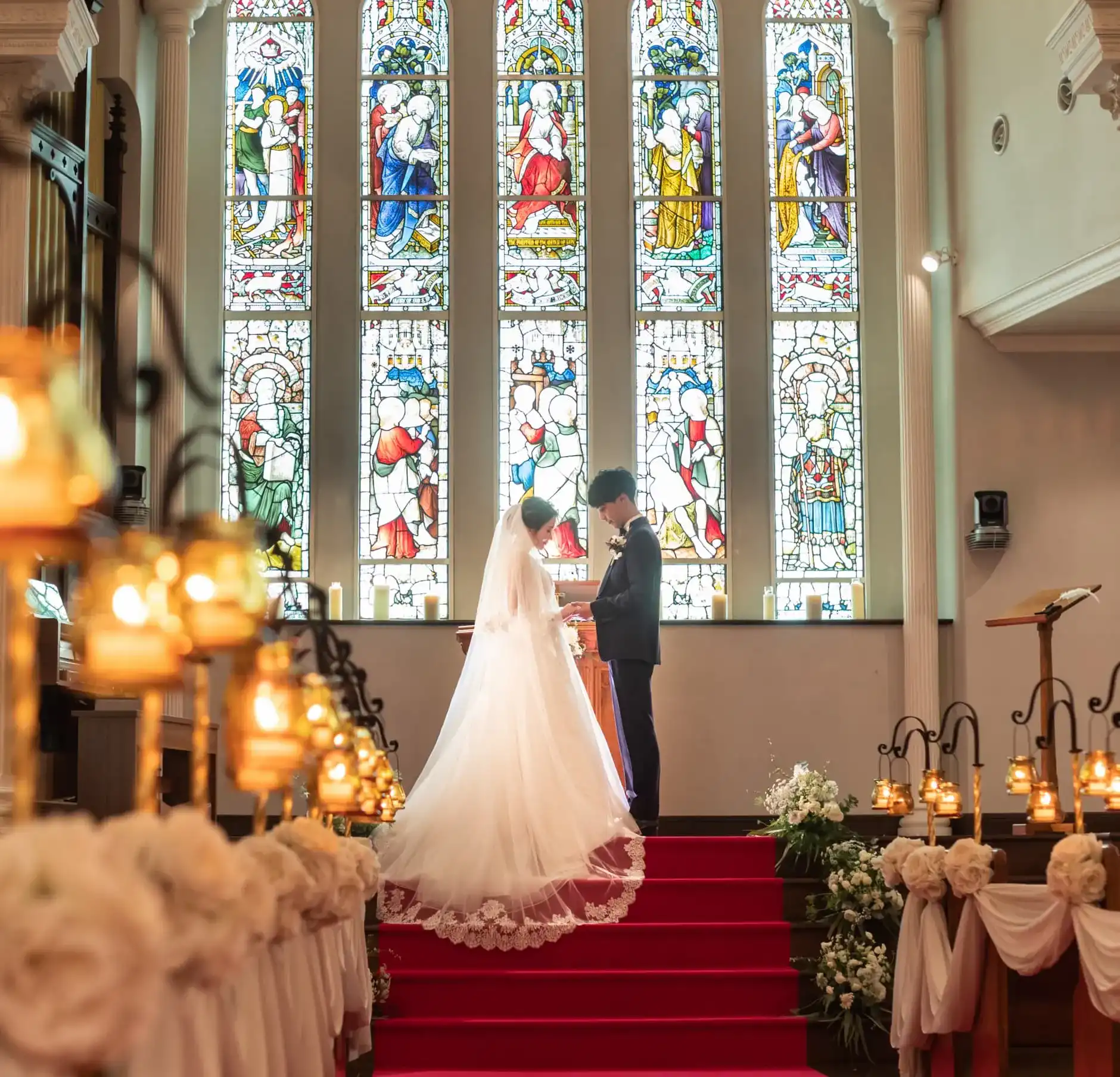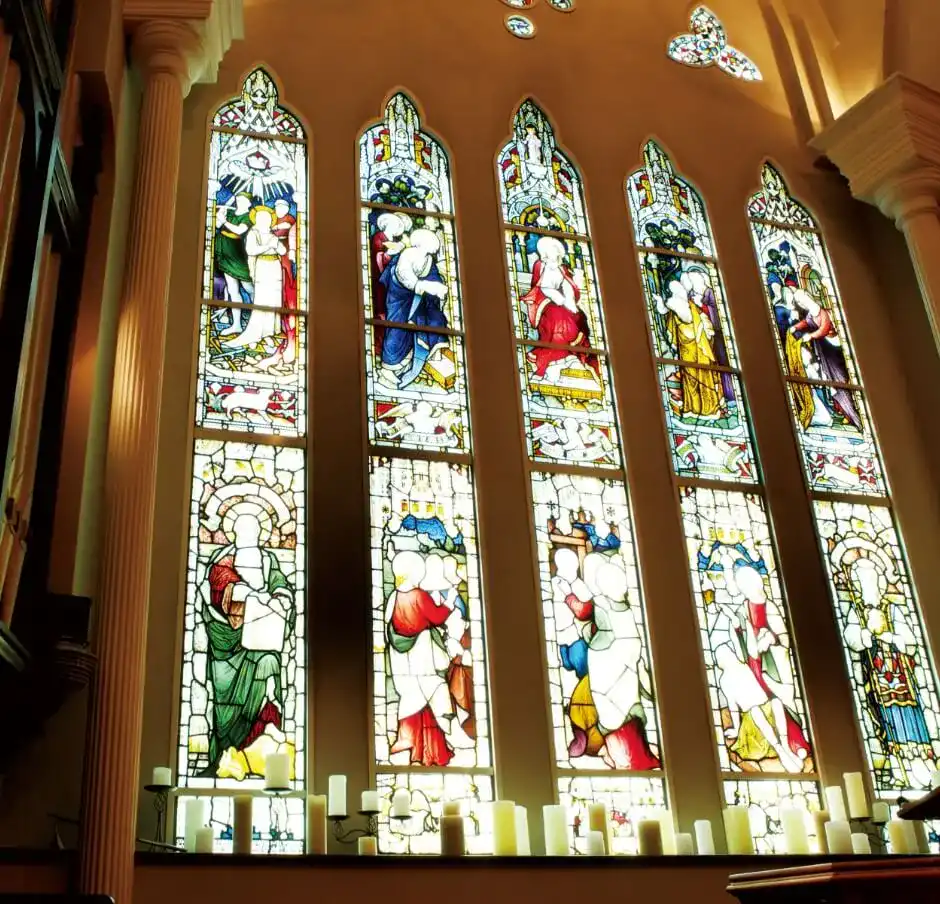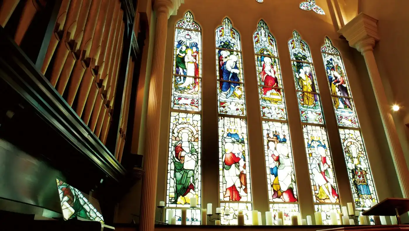 18世紀にヨーロッパで繁栄したロイヤルステンドグラス。繊細で美しい絵画のようなステンドグラスが、季節や天候、時間帯によって表情を変える様子は、見る人の心を奪い忘れられないひとときを創り出す。教会聖堂ならではの美しいシーンを演出します。