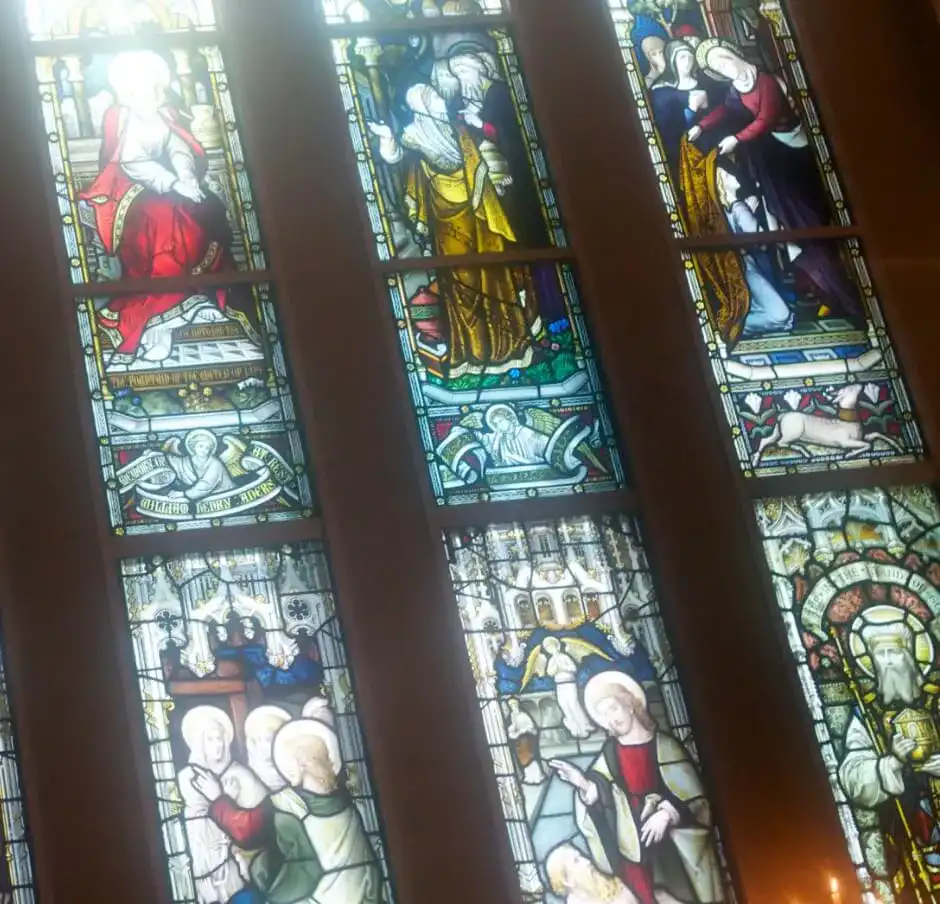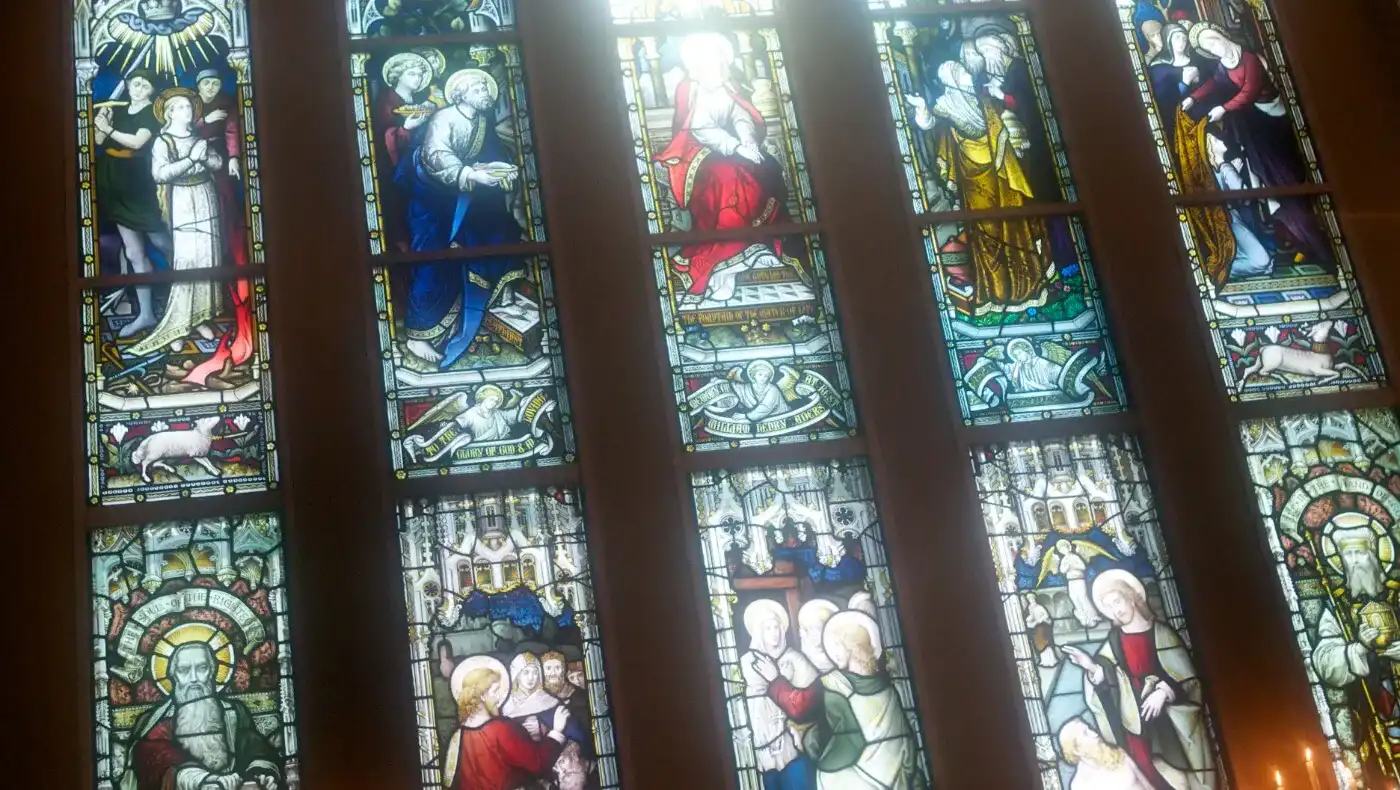 聖堂内を優しく彩るステンドグラスに