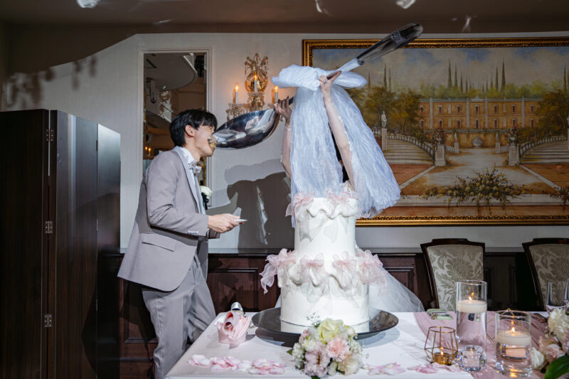 おふたりのこだわりが詰まったリボンのケーキに、ゲストからも歓声が上がります。