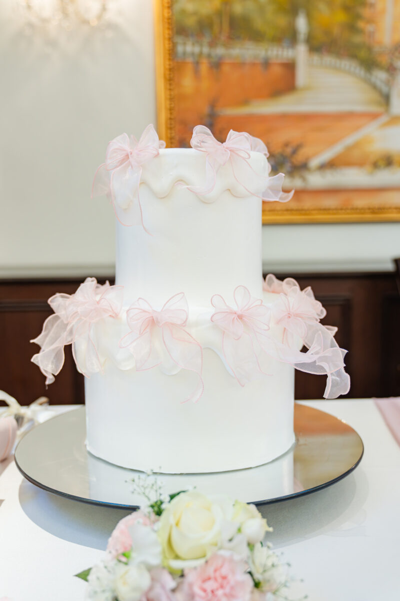 大好きなリボンをあしらった世界にひとつのウェディングケーキも、